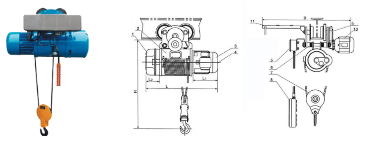 BPCD、BPMD型系列電動葫蘆技術性能和外形尺寸參數(0.25T-20T) | ||||||||||||||