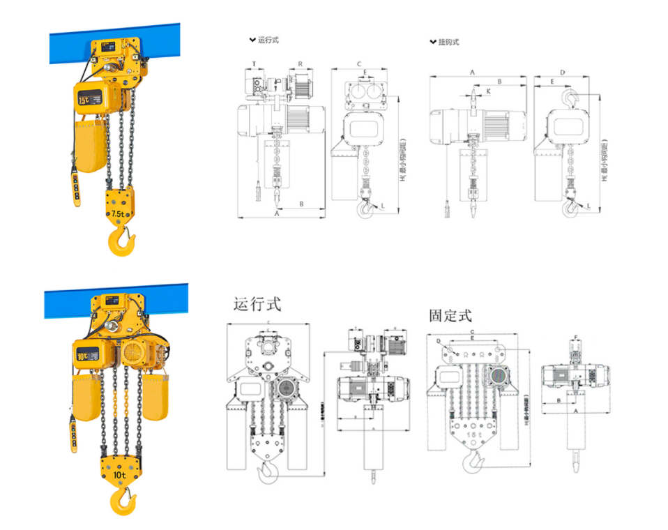 運(yùn)行式環(huán)鏈電動(dòng)葫蘆(7.5T-50T)尺寸參數(shù): | ||||||||