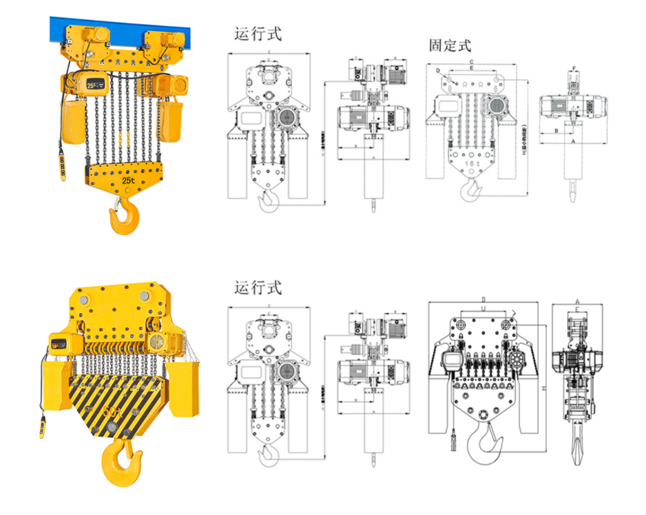 運(yùn)行式環(huán)鏈電動(dòng)葫蘆(30T-50T)尺寸參數(shù): | ||||||
